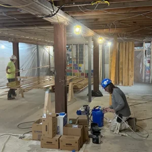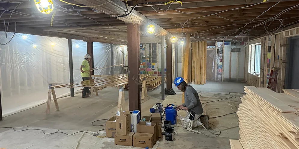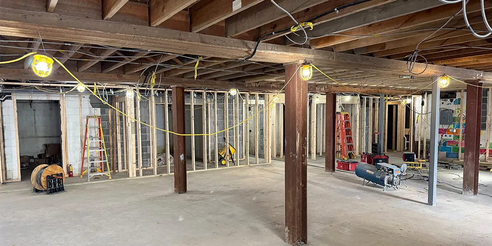 The historic dining hall at Camp Tuckahoe is a bustling and noisy place these days, as the building is rapidly being transformed into our new service center.